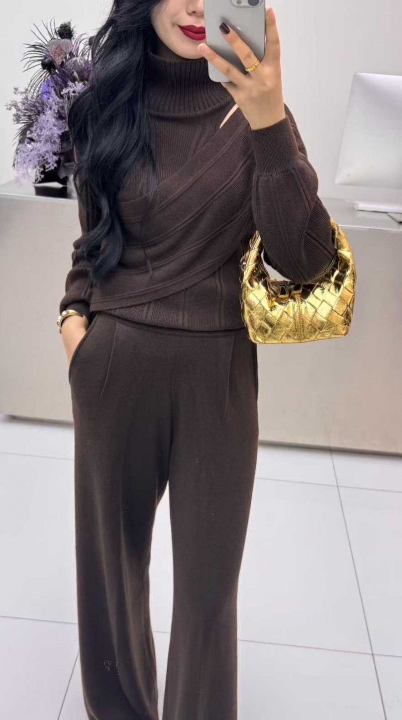 毛衣搭配宽松阔腿裤舒适时尚办公室白领女性选择