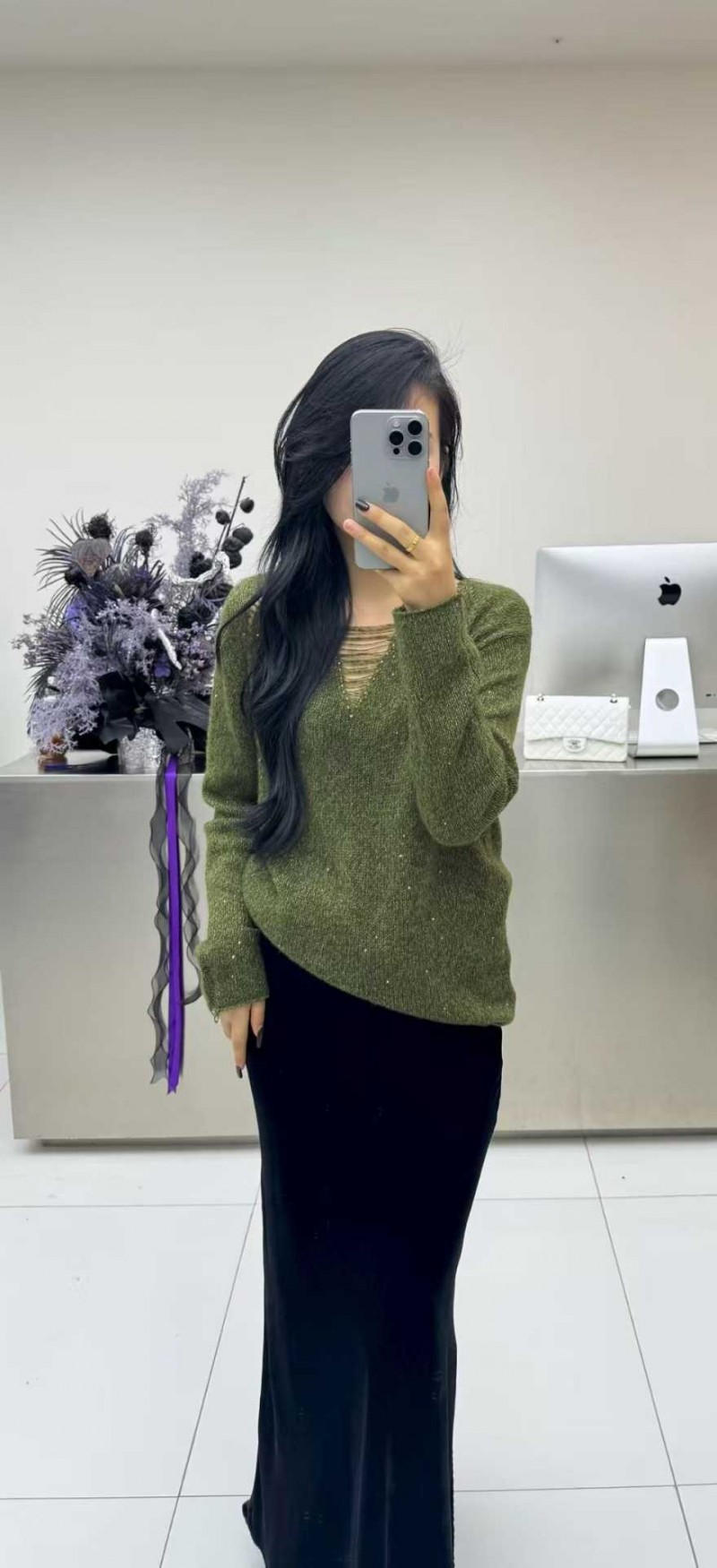 » 墨绿色毛衣搭配黑色瘦身长裙轻盈优雅尽显女性魅力