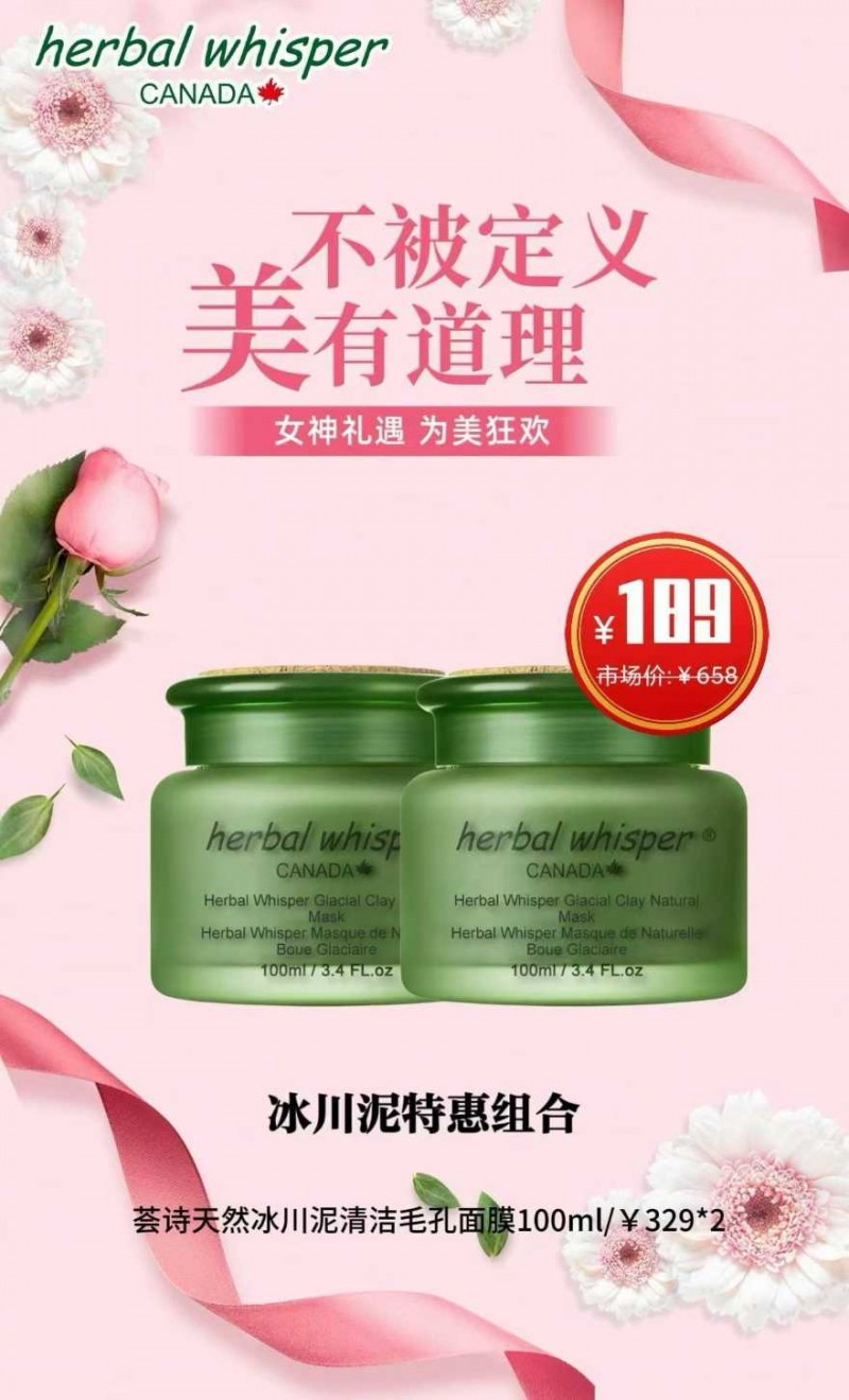 » 冰川泥特惠组合 荟诗天然冰川泥清洁毛孔面膜100ml