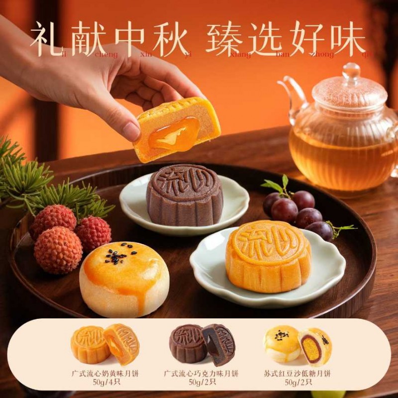 【3盒团购优惠】百草味中秋月饼礼盒400g/24只送礼送长辈