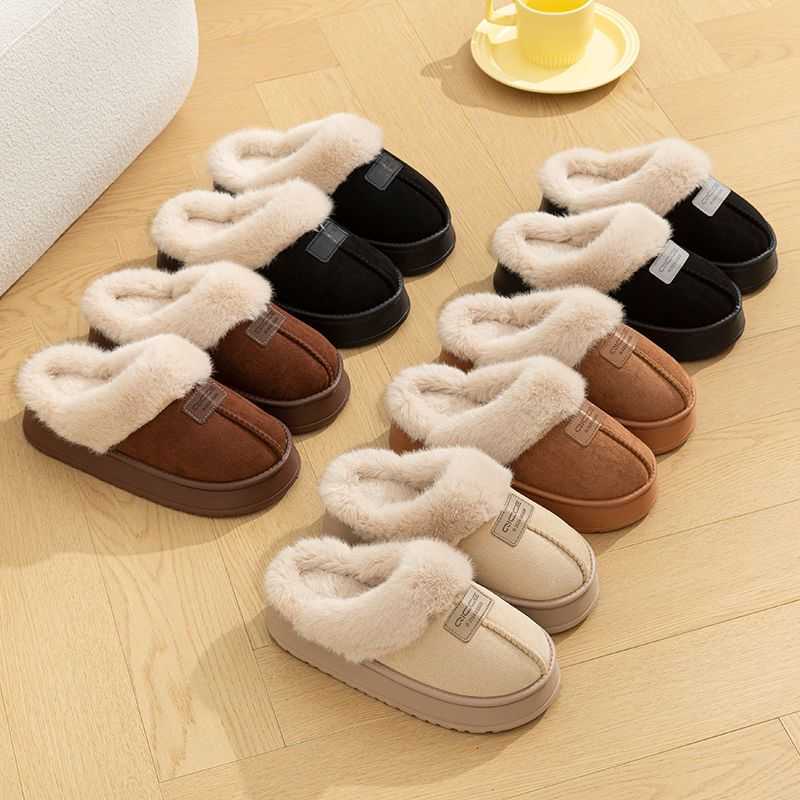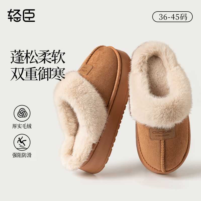 秋冬2025新款翻半包跟棉拖鞋加绒保暖居家室内毛毛绒厚底防滑