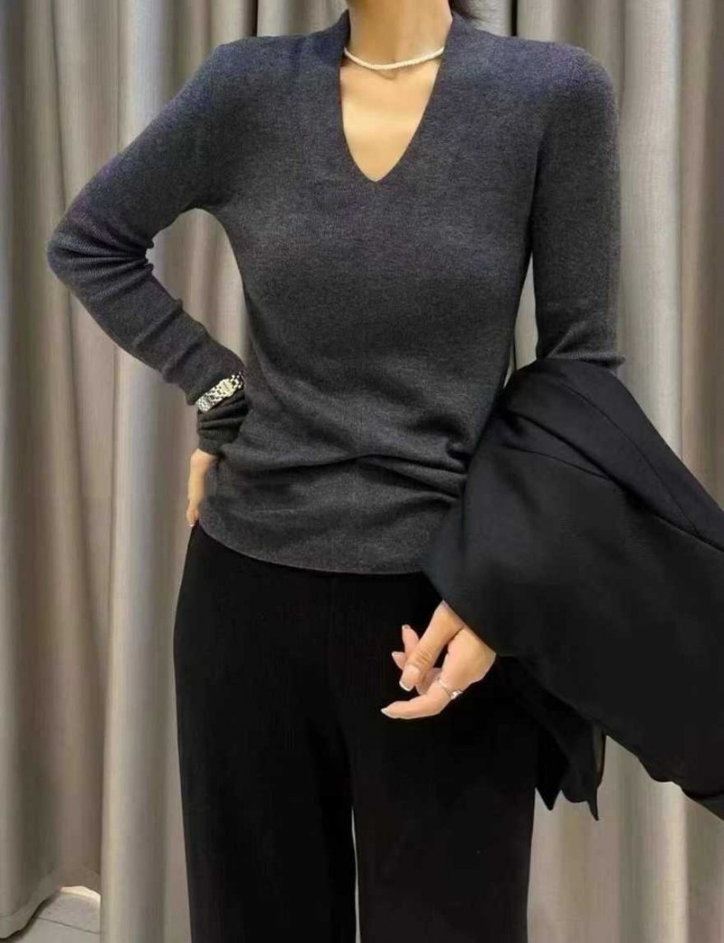 加厚V领打底衫羊毛衫女士内搭修身显瘦长袖上衣