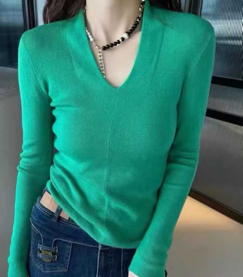 加厚V领打底衫羊毛衫女士内搭修身显瘦长袖上衣