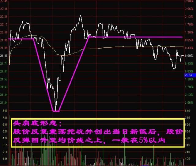 股价反复的震荡盘跌,在创出新低之后,股价就展开了反弹并且回升到均价线之上。股价形成了典型的头肩底。当股价再次拉升到均价线的时候,就可以买进了