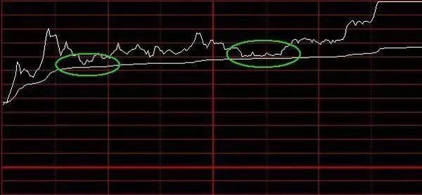 3、支撑做多:实时价格线在均价线附近上方多次受到支撑